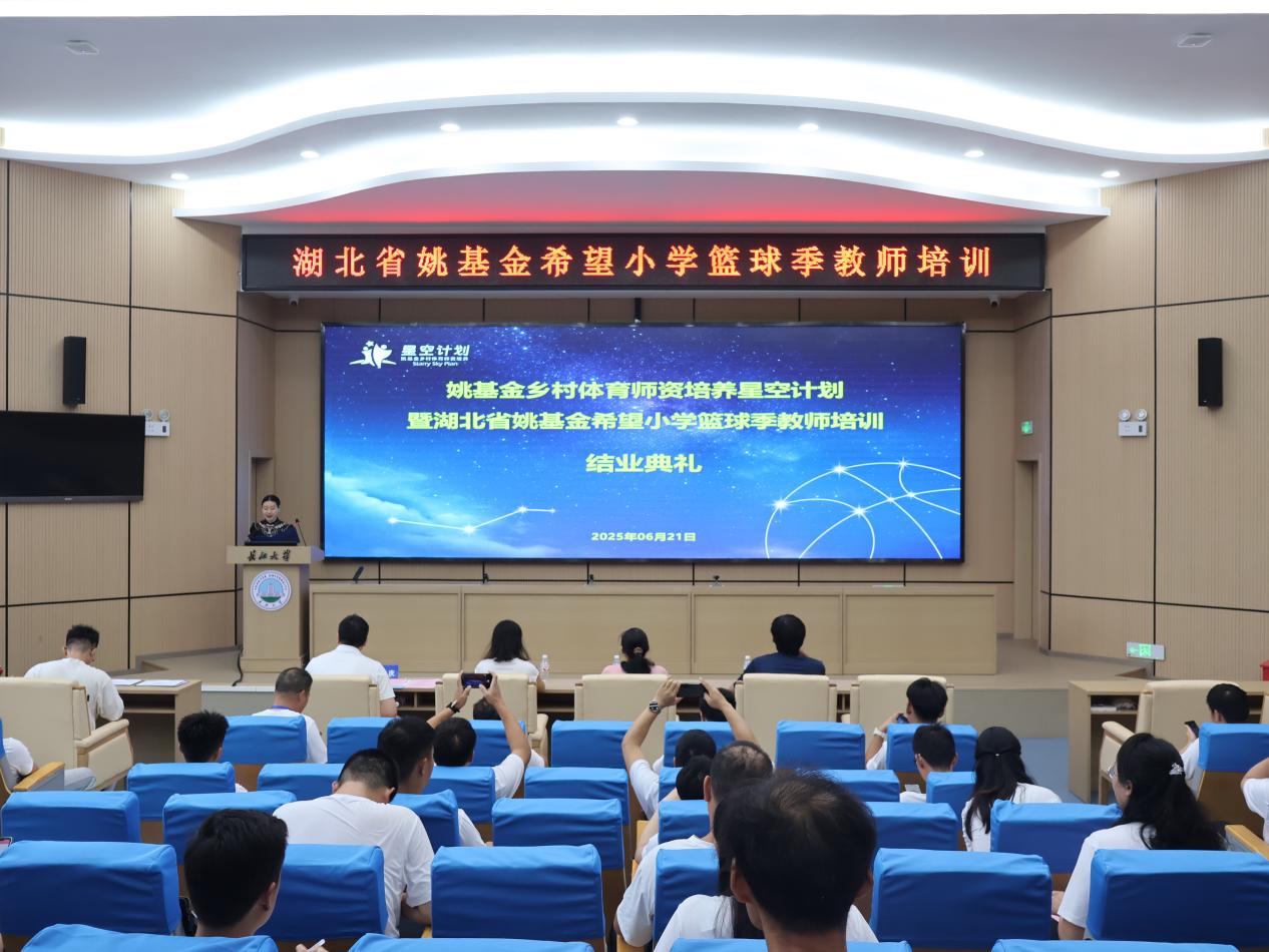 【金楚悦/文 冯佳颖/摄】2025年6月21日上午8:30,姚基金乡村体育师资培养星空计划暨湖北省姚基金希望小学篮球季教师培训结业典礼在长江大学东校区11教报告厅隆重举行。来自长江大学教师教育学院的领导、培训教师及全体参训学员共同见证了这一重要时刻,标志着为期六天的专业培训圆满收官,并为乡村体育教育新征程拉开帷幕。