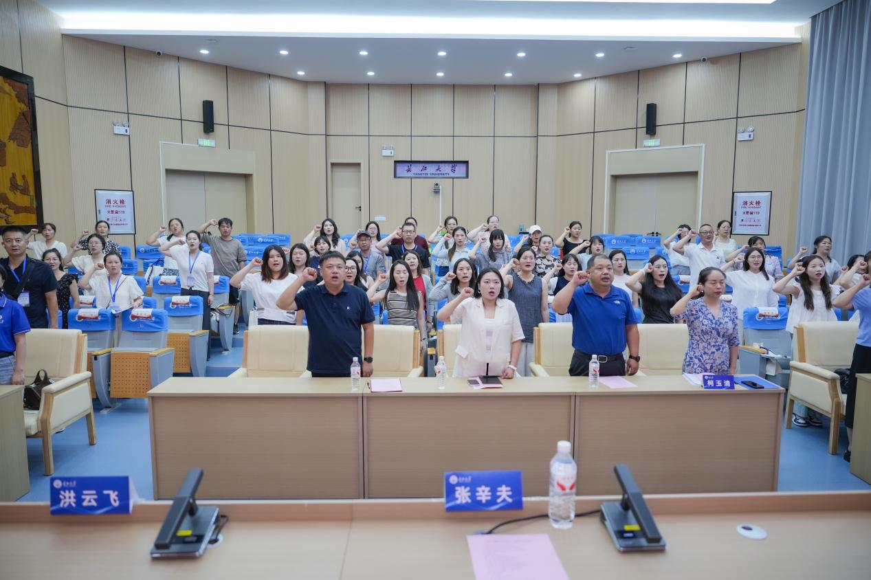 仪式尾声,全体参训教师庄严宣誓,承诺以立德树人为己任,恪守师德规范,矢志为党的教育事业奋斗终身。
