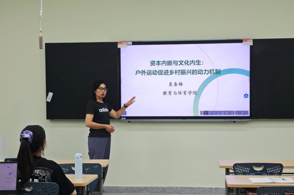 (通讯员 向思懿)2025年5月19日19:00,英国正版365官方网站“求实导师学术沙龙”在16教A区103举行,袁春梅博士以《资本内嵌与文化内生:户外运动促进乡村振兴的动力机制》为题进行了分享,2023级、2024级30余名体育类研究生参加了本次活动。