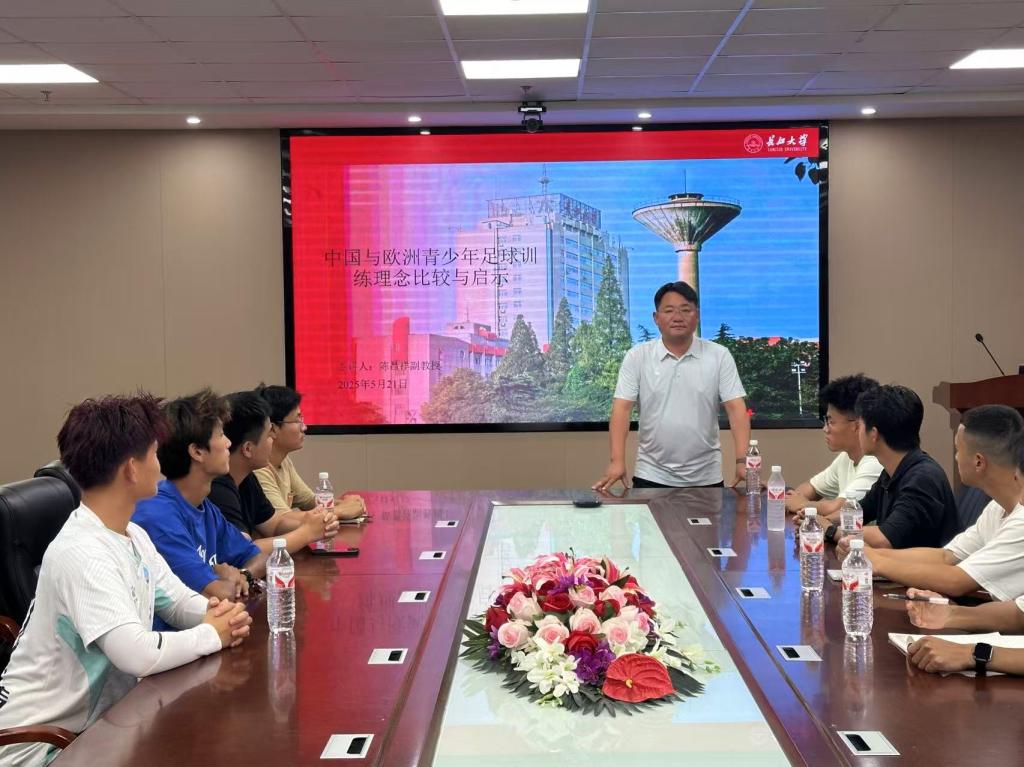 (通讯员 周崇振)2025年5月21日晚19点,我院“求实导师学术沙龙”在文科大楼905举行,主讲人陈昌祥副教授以“中国与欧洲足球发达国家青少年足球训练理念的比较与启示”为主题开展讲座。英国正版365官方网站部分本科生、研究生参加了此次活动。