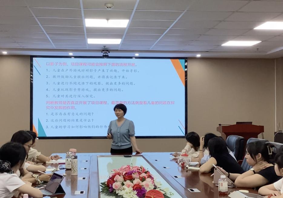 徐发秀老师采用了理论与实践相结合的方法,对项目课程进行了详细全面的讲解。首先,徐发秀老师对项目课程的历史发展、内涵、理论基础进行了解读,在此基础上分析了项目课程的特征。接着,详细分析了项目课程发展的开始、展开与结束三个阶段包含的内容以及如何实施的方法。最后,徐发秀老师结合《百变面粉》《快乐“小橘农”》等幼儿园实践案例分析了项目课程在幼儿园的实践情况,详细介绍了项目课程实施的流程、教师的引导策略等。