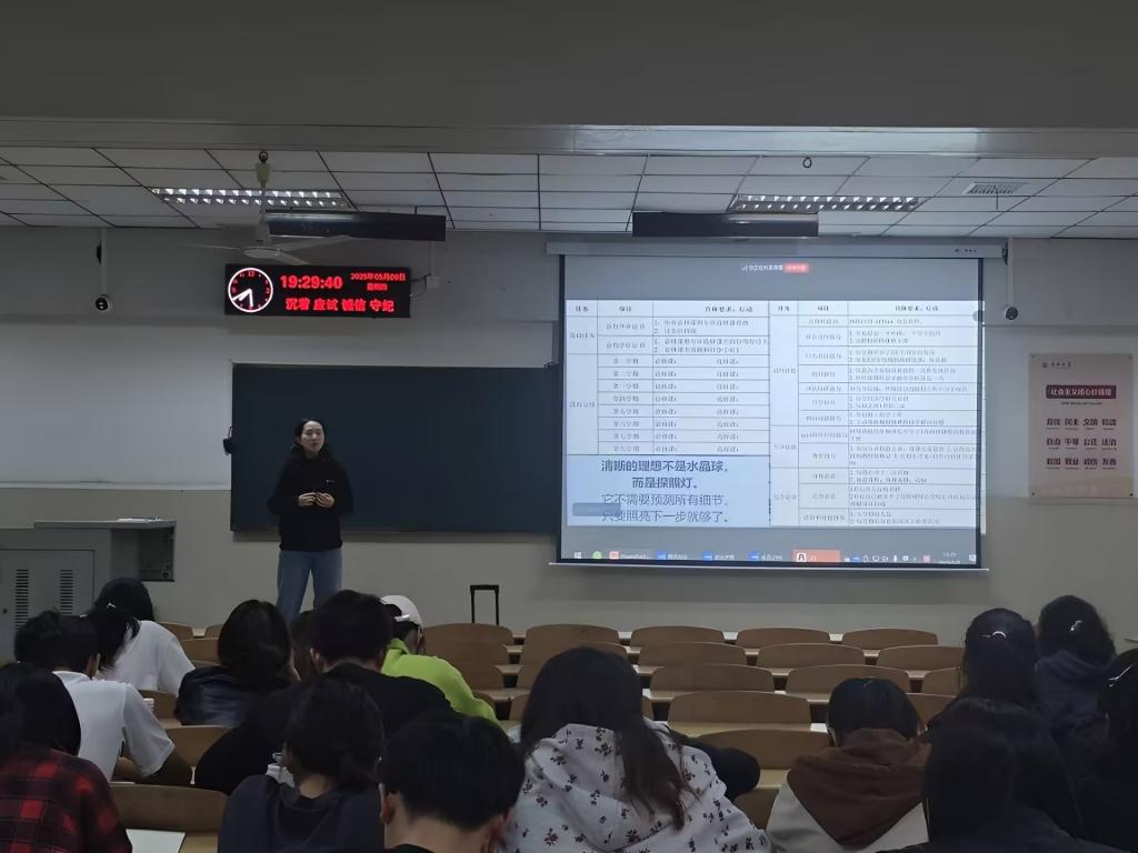 【通讯员王子润/文 何梦哲/摄】2025年5月8日晚七点,英国正版365官方网站以线上线下相结合的形式,在12教202教室举办了以“认识自我,悦纳自我”为主题的心育骨干培训活动。本次活动由学院心理专干任雯婷老师主讲,23级心育骨干线下参与,21、22、24级和研究生心育骨干线上参与,旨在通过系统性培训加强心育骨干朋辈队伍建设,提升学生自助与助人能力,筑牢心理健康防线,为构建和谐校园注入“心”动力。