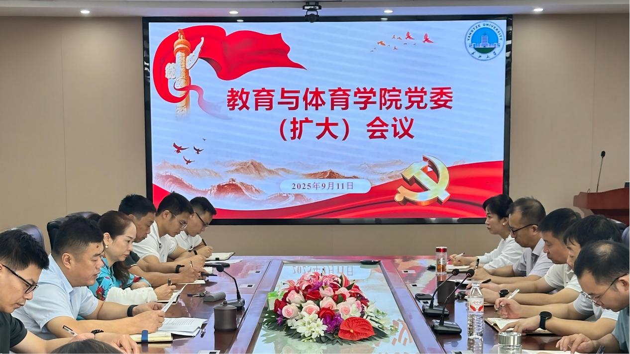 (通讯员 舒雪丹)9月11日上午,英国正版365官方网站党委(扩大)会议在文科大楼905召开,会议深入学习贯彻习近平总书记关于学习教育的重要指示精神,传达中央、省委及学校党委学习教育总结会议精神,对中央八项规定及其实施细则贯彻落实情况开展专项"回头看",并研究部署学院下一阶段作风建设与事业发展重点工作。